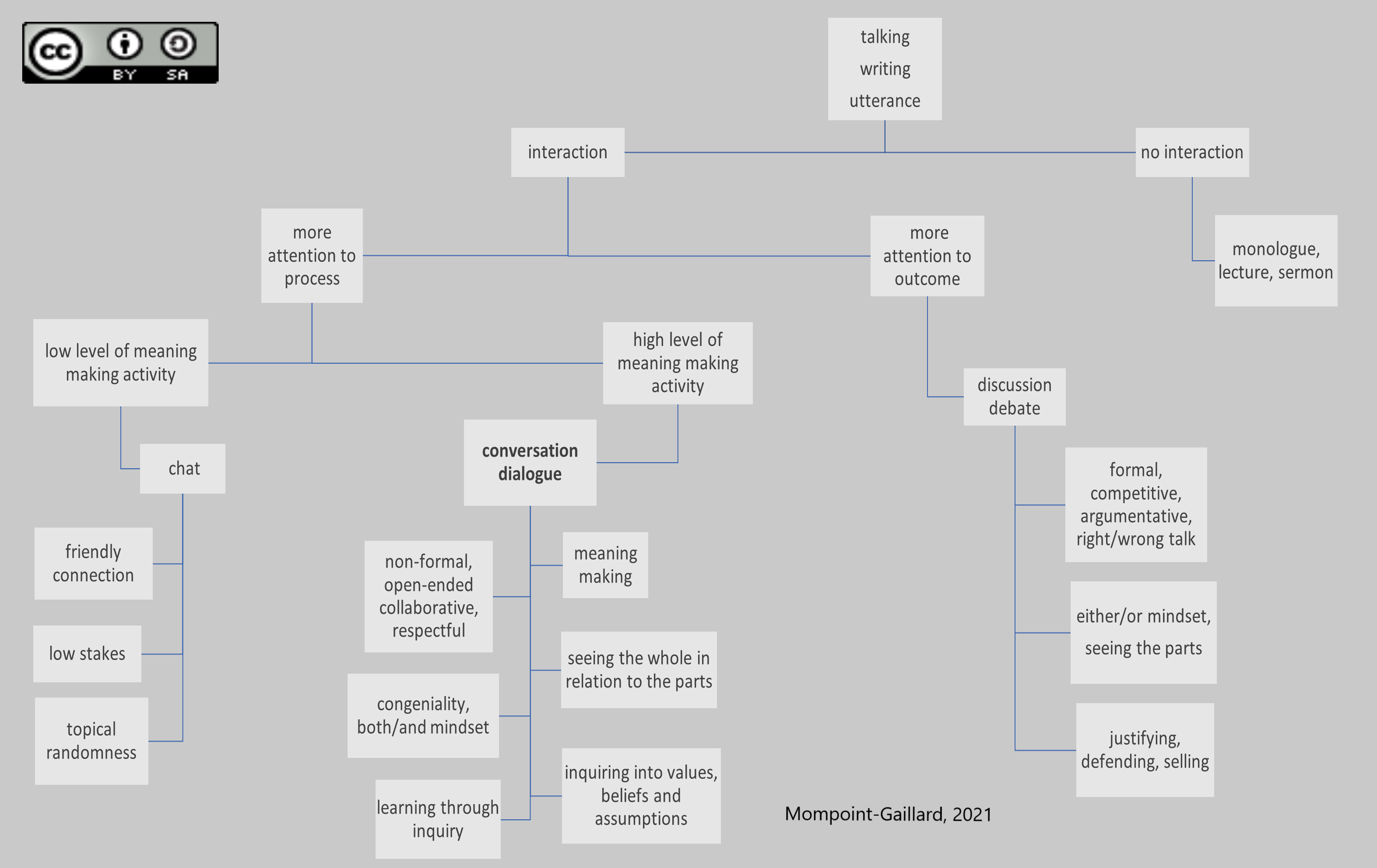Figure 1 The “Conversation Tree” CC-BY-SA (Mompoint-Gaillard, 2021), showing components of meaning making conversation and the distinction with other forms of talking.